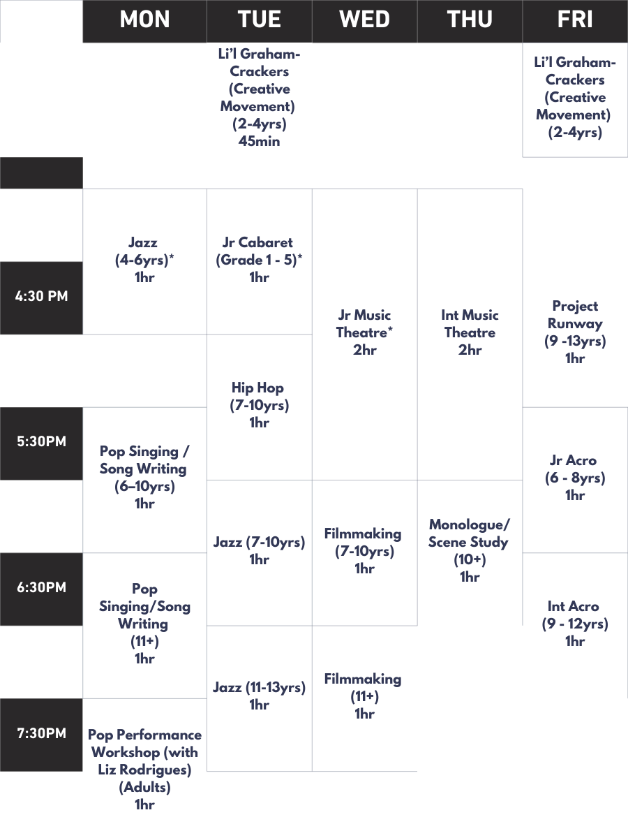 At The Graham Academy, we offer a diverse range of performance arts training programs tailored to various age groups and skill levels. Discover what's available for registration now, explore our current program offerings, and stay tuned for exciting upcoming programs.